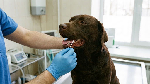A coleta é feita em casa, com swab bucal, e o tutor acompanha tudo com suporte especializado.