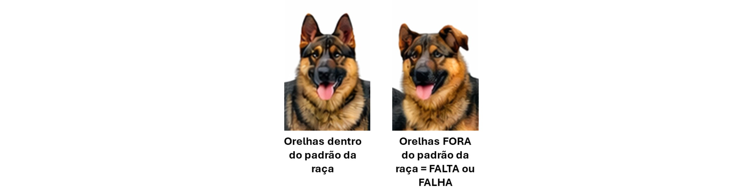 O trabalho de um bom criador envolve, dentre várias outras questões, a análise criteriosa e contínua de seus cães, para a detecção de pequenas faltas ou falhas (físicas ou de comportamento). O criador deve conhecer muito bem o padrão da raça que cria, e ser capaz de detectar qualquer diferença em relação a este padrão. Na figura abaixo, mostramos um característica padrão da raça, conhecida popularmente, como sendo necessariamente uma orelha ereta, e logo ao lado, a orelha fora do padrão da raça.